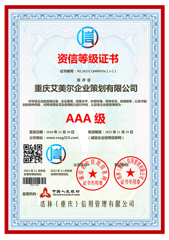 重庆PA直营企业策划有限公司被被评级为AAA级资信企业,重庆企业策划,重庆企业策划公司,重庆招商策划